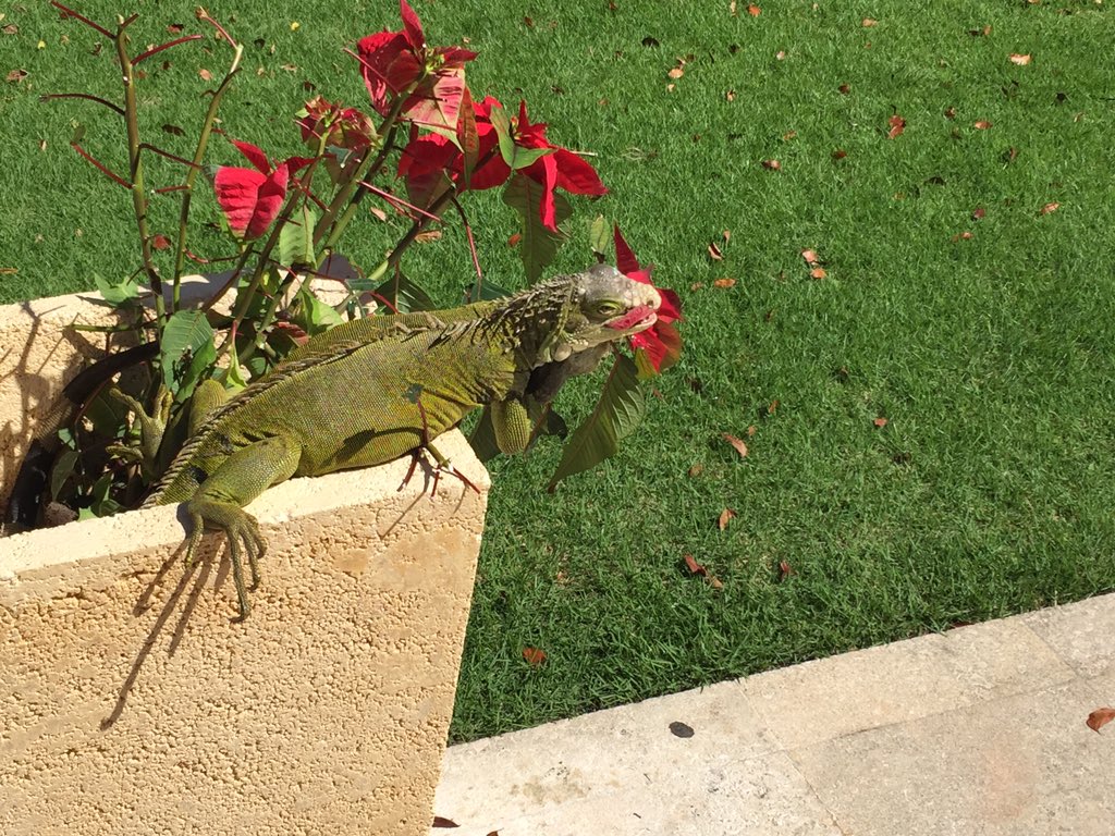 Iguana eating a pointsettia - not something you see every day.